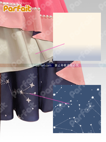 スカート部分の生地は表地はグラデーション、裏地は星座をモチーフとしたデザインを昇華プリントで再現しました。