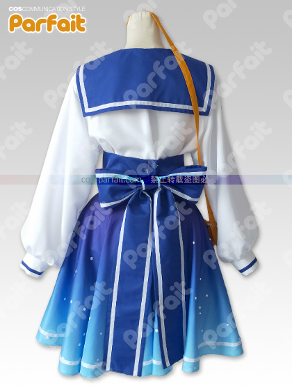 鮮やかな青色のスカートは星空柄のグラデーションで、プリントデータを制作し昇華プリント・縫製しました。