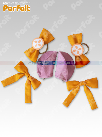 首元のブローチやリボンのワンポイントはプリント生地で製作しています。