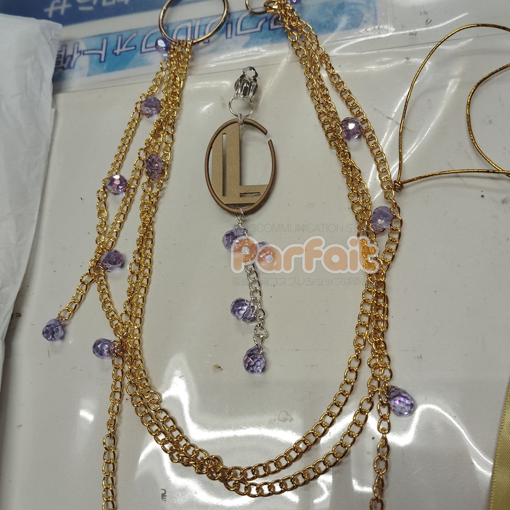 ブラウス、スカート、ジャケットと素材を変えて質感高く仕上げられているとともに、金属+キャスト製のアクセサリも豪華です。