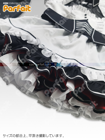 メイド服はスカートの布を多めにして重厚な感じを出し、胸元はメッシュ生地でキャラクター特有のセクシーさを出すようにしました。